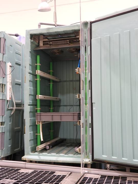 Nuestras salas de cultivo hidropónico, se situan en contenedores marítimos, es un cultivo vertical que realizamos en nuestros carros ENDICAR y con canaletas DFC.